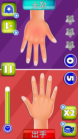 3、雙人模式開始前,我們可以左右滑動(dòng)屏幕來更換手掌的皮膚。