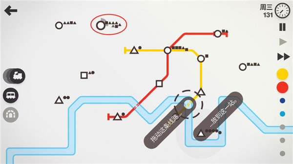 1>線路增加:在車站上按住并拖動到其他車站即可建立線路。繼續(xù)拖動經(jīng)過更多車站就可以將這些車站連入同一條線路,想停止連接時松開即可。