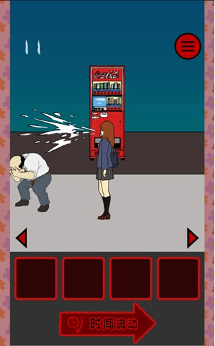 算好回合差,妹子先走幾步,然后放面包讓她啃,啃完她會去買飲料,買飲料一結(jié)束遇到癡漢就會噴他一臉。請一定要掐算好時間,如果放太早,癡漢還沒來,就噴不到他,如果放太晚,在妹子買飲料的時候癡漢就抱上來了。