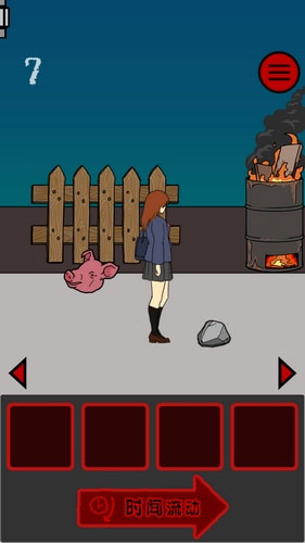 終于到了最后。這一關(guān)也不難。妹子走幾部后用大石頭擋住背后癡漢的路,然后鳥被驚嚇往前飛。往前飛后,在鳥前面放小時候讓妹子絆倒,第二次驚嚇鳥。同時用豬頭阻擋跟過來的癡漢,即可通關(guān)。