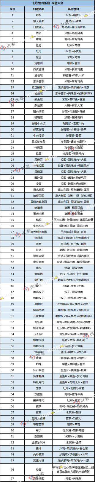 美食夢物語中琳瑯滿目的菜品一定讓大家挑花了眼。下面小編給大家?guī)怼睹朗硥粑镎Z》的菜譜大全,讓大家輕松選擇自己餐廳中的菜譜。