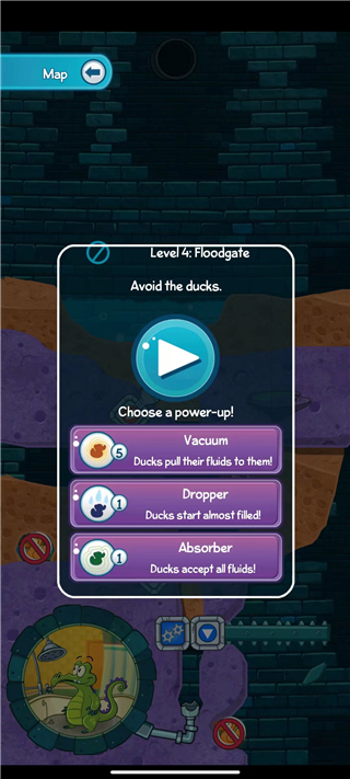 吸收器;作用是:鴨子會(huì)吸收所有液體!例如下圖:游戲顯示的是大頑固,正常的關(guān)卡是需要毒水,使用道具后清水也可以收集。以此類推:愛麗關(guān)卡同樣適用。