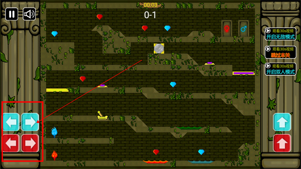 3、左手分別控制冰火雙人的左右走向;