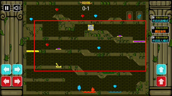 3、不同顏色的角色只能收集相應(yīng)顏色的寶石以及進(jìn)入相應(yīng)顏色的門。