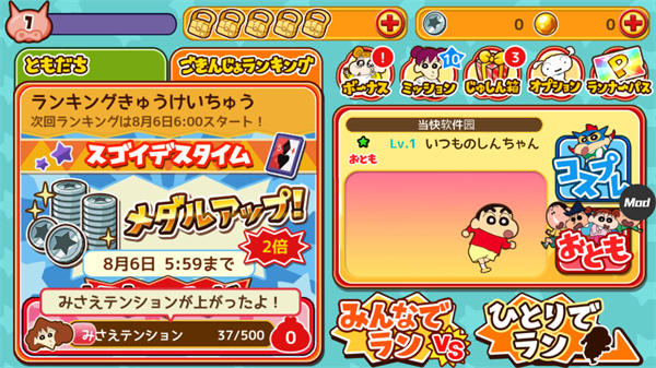根據(jù)游戲中角色扮演Shin-chan的稀有性,最多可設(shè)置三名玩家,所以讓我們根據(jù)任務(wù)的內(nèi)容和目的與不同的朋友一起玩!