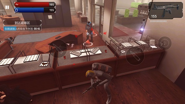 豐富的玩法:可以移動(dòng)射擊、可以隱蔽建筑物之后射擊、還可以跳躍于木箱及掩體上進(jìn)行射擊。