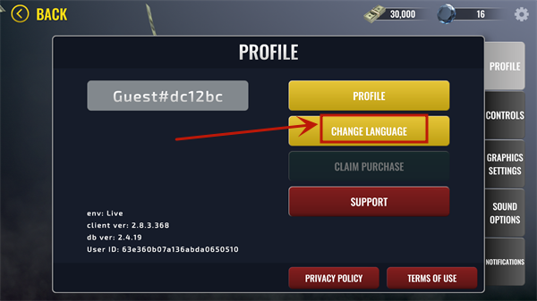 2、在設(shè)置界面點(diǎn)擊“CHANGE LANGUAGE”進(jìn)入語(yǔ)言設(shè)置板塊