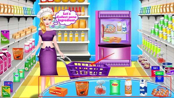 2、下方桌子上會(huì)提供需要的材料樣式,從貨架上找到相同的材料放入購(gòu)物籃