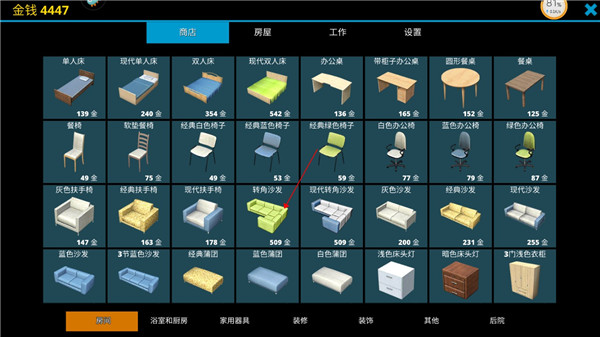 2、里面有很多可以供你挑選的家具哦,大家可以根據(jù)自己的愛好來挑選哦~