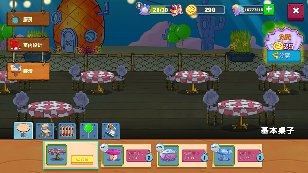 5、設(shè)計屬于你自己的比奇堡餐廳!