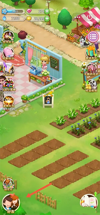 點擊界面下方的好友列表,可以繼續(xù)去不同的好友花田摘花。