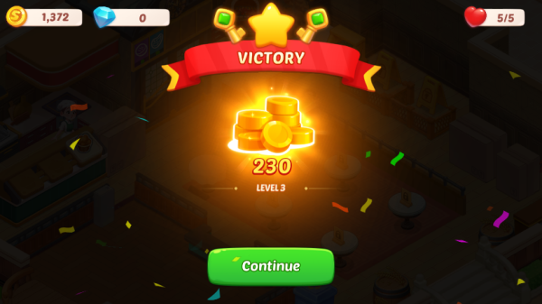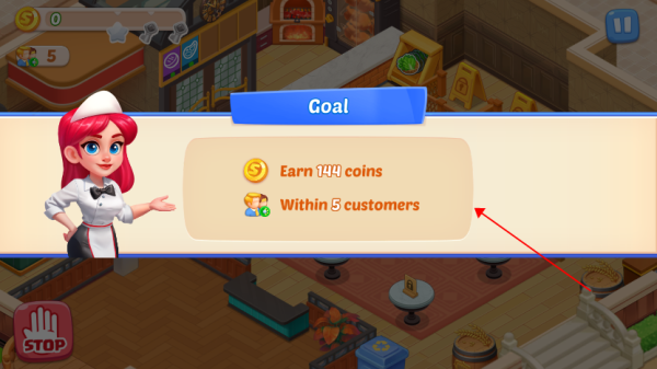 2、例如此關(guān),需服務(wù)五位客人并獲得144金幣方可滿星過關(guān)