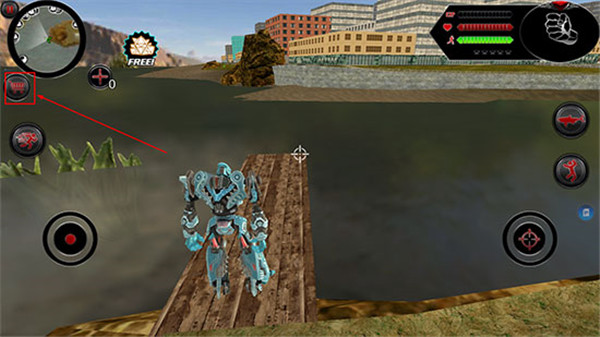 5、跳入水里后,可以點擊右側(cè)的切換按鈕,即可從機器人變換成鯊魚形態(tài);