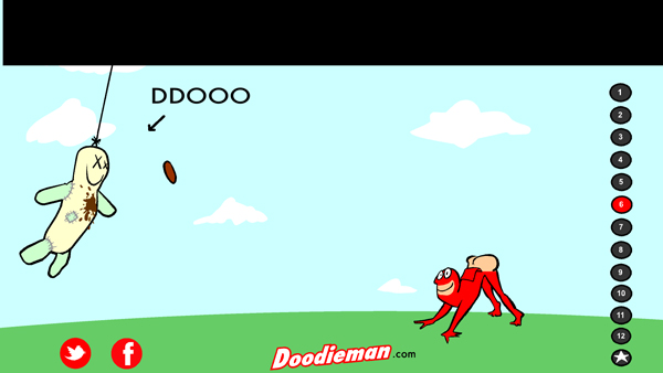 3、設(shè)定好后,點(diǎn)擊右側(cè)1-10按鈕,玩家可操縱大便超人釋放大便攻擊人偶;