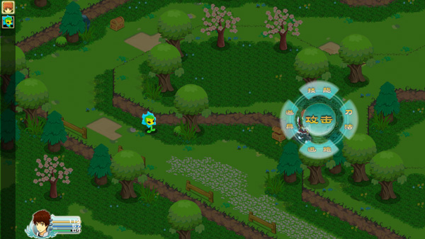 游戲中的戰(zhàn)斗系統(tǒng)屬于半回合制,從左邊的順序欄中可以看出攻擊有速度之分,不是簡單的一人一次。除了普通攻擊之外還有技能和刀法,分別消耗法力和怒氣,伴隨著人物成長學(xué)到更多,戰(zhàn)斗的自由度也將大大提高。游戲后期一定也會有其他人物的加入,以小隊形式走迷宮還是比較常見的RPG玩法,就等玩家自己體驗啦。