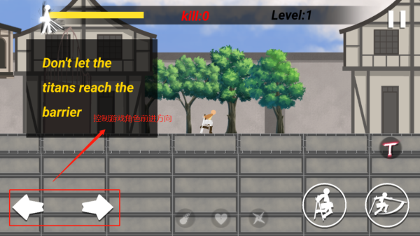 2、通過(guò)圖示的左右箭頭操控人物角色移動(dòng)