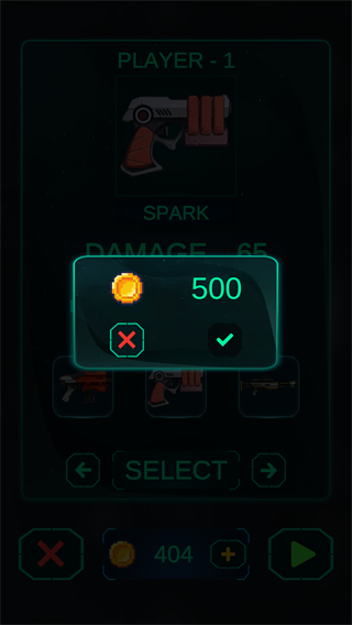 3、單人模式的玩法很簡單,選擇角色與武器后點擊右下角的右鍵即可進入游戲。