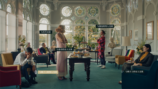 5、來到宴會大廳你可以與他們逐個對話,根據他們口中的線索進行整合從而進一步展開行動。