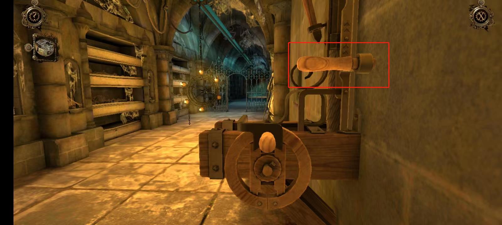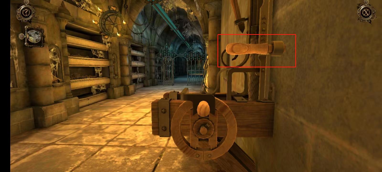 14、向右搖動機(jī)關(guān)上的搖柄直到機(jī)關(guān)卡死,機(jī)關(guān)卡死后會出現(xiàn)把手,向上拖動它,再重復(fù)一次;