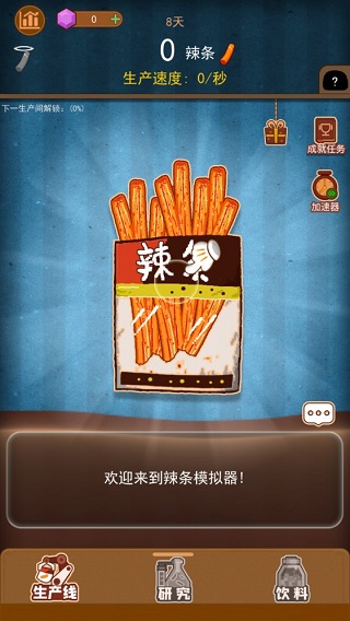 3、隨著辣條數(shù)量的持續(xù)增加,玩家可以獲得新的生產(chǎn)工具,同樣依靠升級的方法,能夠加速辣條的生產(chǎn)數(shù)量,減輕玩家手指點擊的頻繁操作。期間你還可以通過研究,加速道具的開發(fā)與使用。