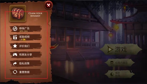 2、現(xiàn)在呢關(guān)閉選項(xiàng),進(jìn)入應(yīng)用內(nèi)商店,支持購買飛鏢、服裝、劍;