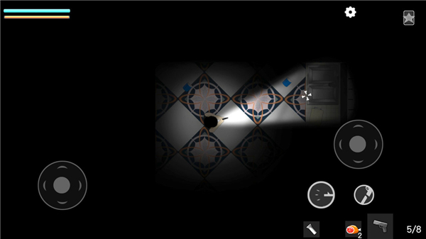 1、開局人物左上方那個是手電筒,手槍一般會刷在最右邊(越過桌子)的墻邊或左上方的廁所里(需要開門)的馬桶邊。