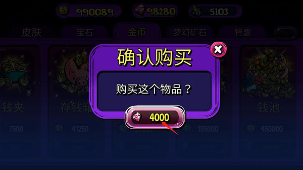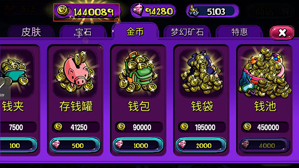 PS:可使用鉆石無限購買金幣。