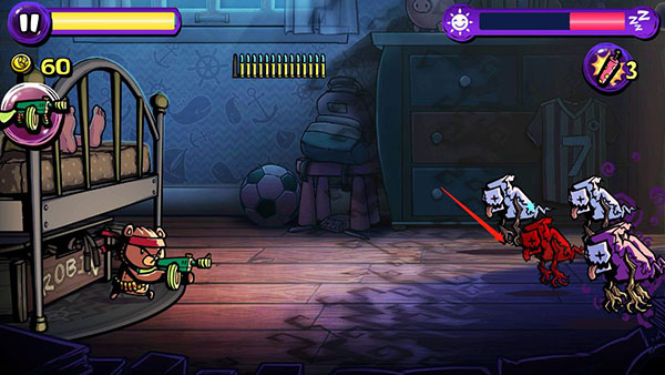 裝備各種超級(jí)棒的武器!用BB槍、毒槍、胡椒噴霧、飛鏢和其他許多許多武器攻擊噩夢(mèng)惡魔!用炸彈轟炸敵人,用霜冰器冰凍他們!在羅賓的床上設(shè)置各種了不起的玩具防御道具。建造鉛筆路障阻止噩夢(mèng),或裝備激光燈攻擊遠(yuǎn)處的怪獸。