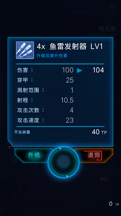 3、例如“毀滅者”戰(zhàn)艦,有兩個(gè)武器系統(tǒng)一個(gè)推進(jìn)器和一個(gè)裝甲系統(tǒng),選擇所需要升級(jí)的系統(tǒng)