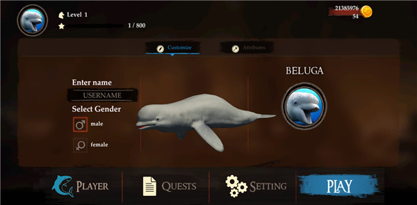 2、大家可以為白鯨取一個昵稱,選擇好性別;