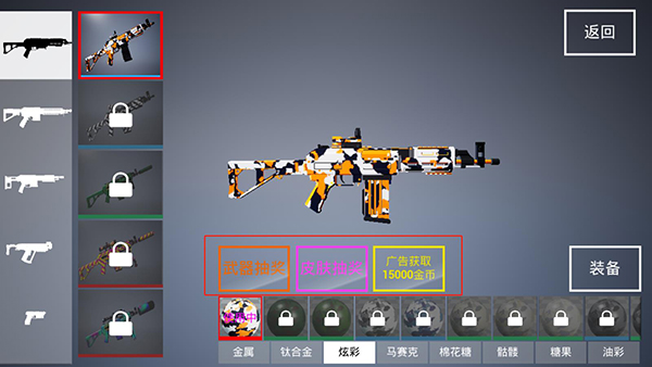 4、可以通過武器抽獎、皮膚抽獎和廣告獲取得到更多的武器。