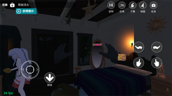 2、進(jìn)入游戲后,左右手心向上手掌分別是“給”和“索要”,可以遞給小忍物品或者索要物品。