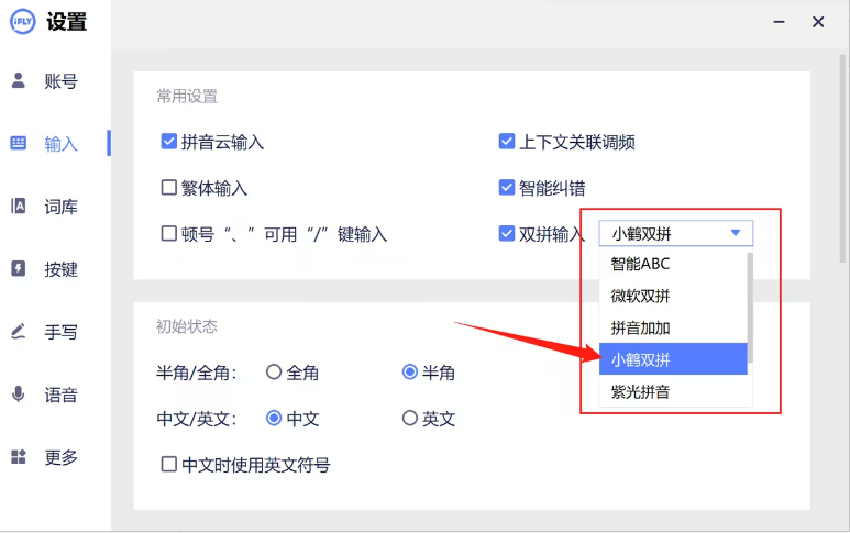 對(duì)雙拼輸入用戶的照顧,支持多種雙拼輸入方式