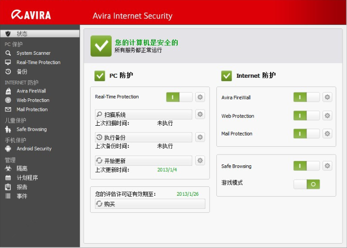 全面的安全防護:Avira 能夠提供全方位的安全防護,包括網(wǎng)絡(luò)防火墻、防病毒、防間諜軟件、密碼保護等功能,讓用戶的電腦免受各種攻擊和威脅。