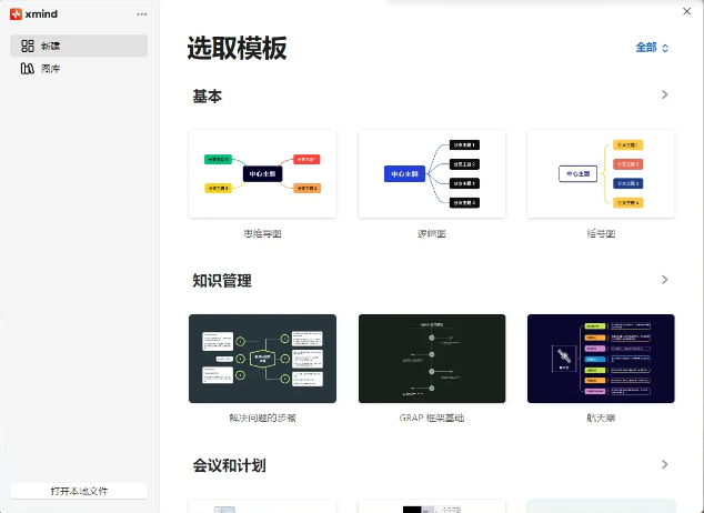 2. 主頁控制面板:每次打開XMind,您都可以看到全新的主頁控制面板,選擇導(dǎo)圖結(jié)構(gòu)、主題風(fēng)格,并打開最近的文件。