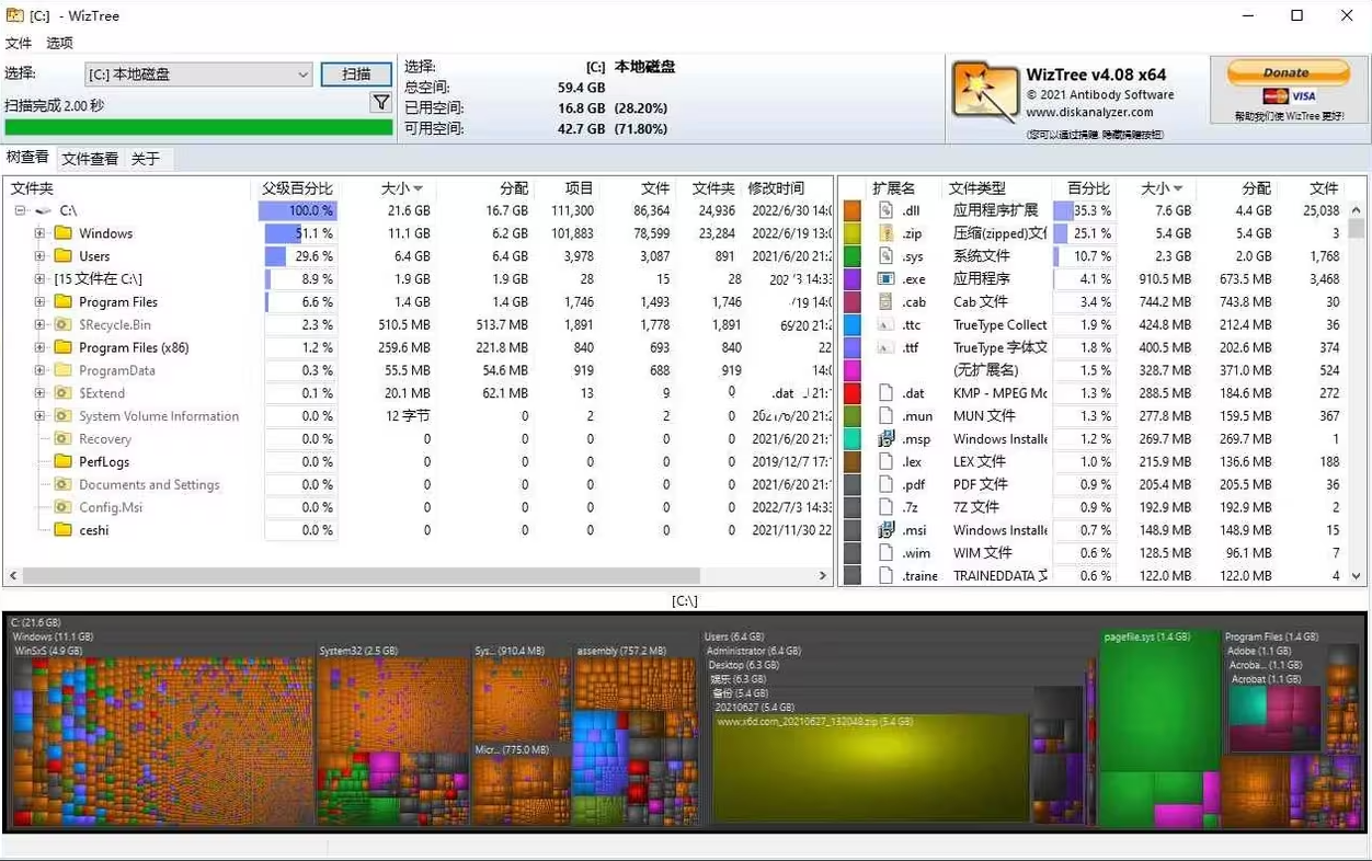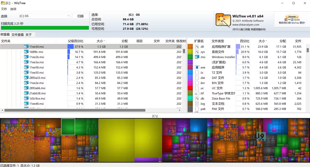 〓用來(lái)管理和分析硬盤(pán)文件大型的軟件。如果你在煩惱在硬盤(pán)中有哪些大文件占用空間,自己卻不知道,你可以用WizTree來(lái)進(jìn)行掃描。
