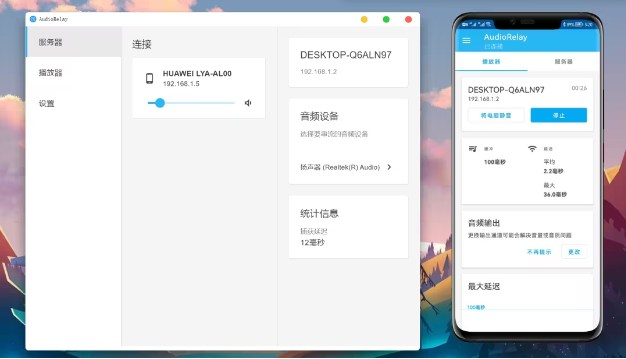 需要在手機(jī)與電腦分別安裝AudioRelay,然后連接同一局域網(wǎng)或Wifi