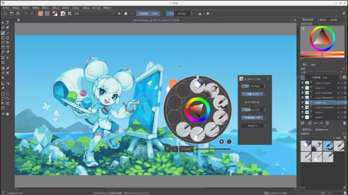 Krita是一款支持 Windows、macOS的自由開源的免費(fèi)繪畫軟件,它的功能不遜色于絕大多數(shù)的行業(yè)標(biāo)準(zhǔn)商業(yè)軟件,也有越來越多的專業(yè)人員開始使用它來進(jìn)行創(chuàng)作。Krita還有一定程度的圖像處理能力,支持?jǐn)?shù)位板/壓感,界面乍看類似于 PS,功能也有 PS 的七八成,同時(shí)又像 SAI 那樣具有針對繪畫優(yōu)化的各種設(shè)計(jì)。Krita 還有強(qiáng)大的筆刷引擎和自身特有的一些直觀的操作方式。它可以勝任從起草、勾線、上色、調(diào)整到完成精細(xì)作品的整個(gè)繪畫環(huán)節(jié)的工作。Krita 還可以制作動(dòng)畫、配合 Blender 制作紋理、支持色彩管理和 HDR 等。