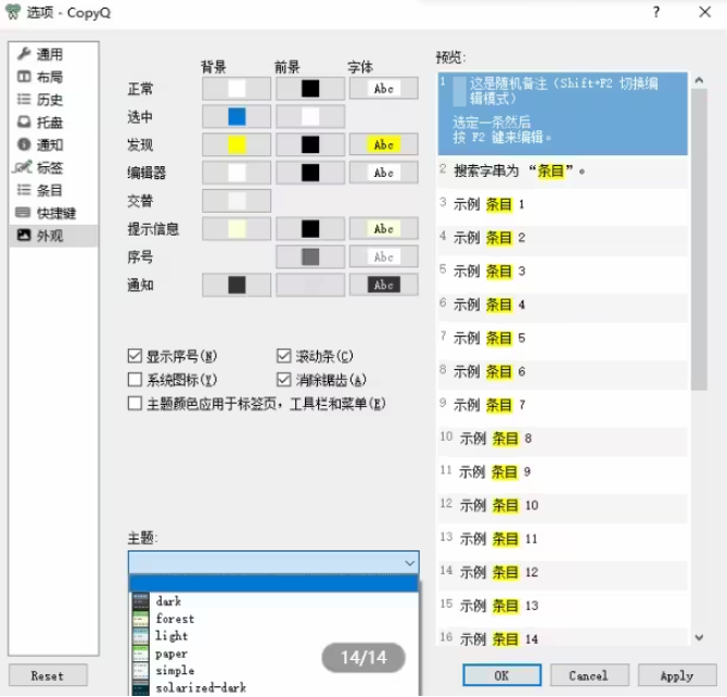 CopyQ是一款開源的、跨平臺剪貼板管理工具,支持 Windows、macOS、Linux,可以幫你管理保存在剪貼板中的多個文本、圖像、HTML 等格式內(nèi)容,并支持需要的時候快速檢索剪切板內(nèi)容,另外支持全局快捷鍵、自定義外觀、標(biāo)簽、多標(biāo)簽頁(分類)、編輯等功能,以及自動運(yùn)行命令,比如檢測到網(wǎng)頁鏈接則自動添加標(biāo)簽等高級功能。