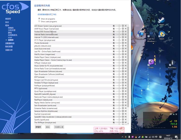 1、cFosSpeed支持多種寬帶接入方式,系統(tǒng)底層程序,占用內(nèi)存小。