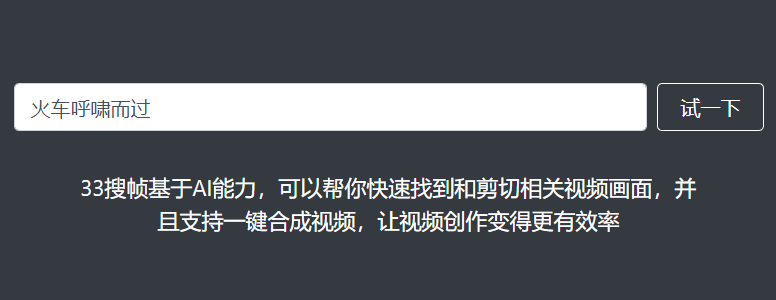 在33搜幀的主界面中,你可以看到一個搜索框,這就是你搜索視頻畫面的地方。你只需要在搜索框中輸入你想要的視頻畫面的描述,比如“火車呼嘯而過”,“一個女孩在跳舞”等等,然后點擊搜索按鈕或者按回車鍵,就可以開始搜索了。