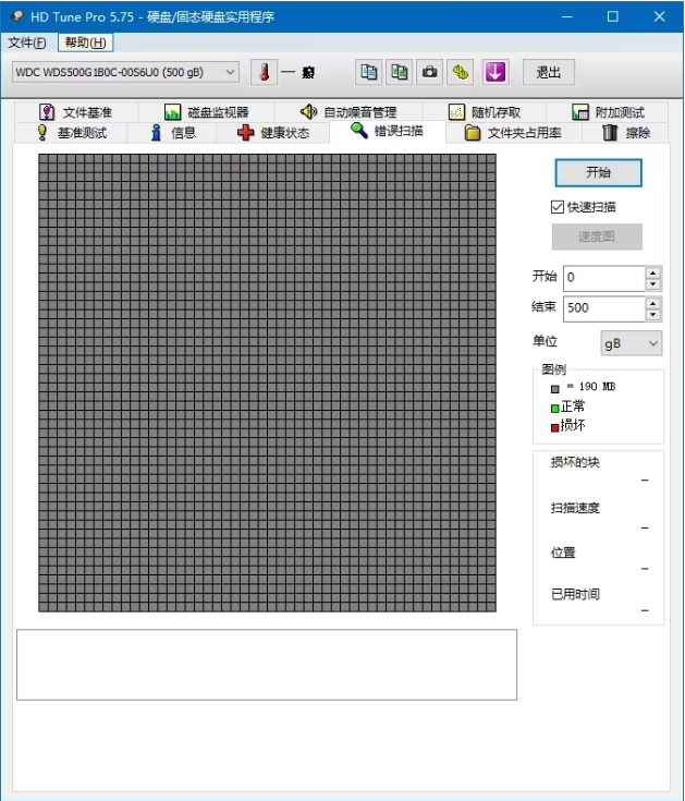4、錯(cuò)誤掃描測(cè)試 在錯(cuò)誤掃描測(cè)試頁(yè)面,用戶可以點(diǎn)擊“開(kāi)始”按鈕,來(lái)檢測(cè)磁盤(pán)是否存在損壞的扇區(qū)。但用戶要注意的是,如果沒(méi)有勾選“快速掃描”選項(xiàng)那么運(yùn)行時(shí)間會(huì)比較長(zhǎng),所以建議用戶勾選此選項(xiàng)來(lái)快速進(jìn)行檢測(cè)。