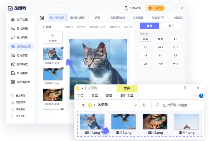 改圖鴨是一款免費(fèi)的在線圖片編輯工具,提供了豐富的圖像處理功能和工具,完全免費(fèi)。支持大文件轉(zhuǎn)換、更大批量文件轉(zhuǎn)換、提供豐富的圖片編輯、美化工具等。
