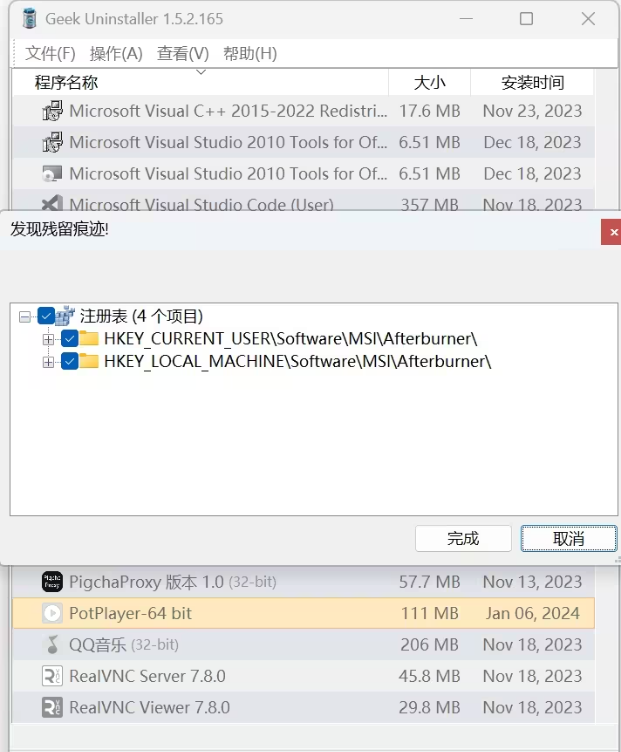 市面上有不少專門的卸載工具,使用它們來卸載軟件時可以掃描出殘留的垃圾,Geek Uninstaller是其中最為流行的一款。