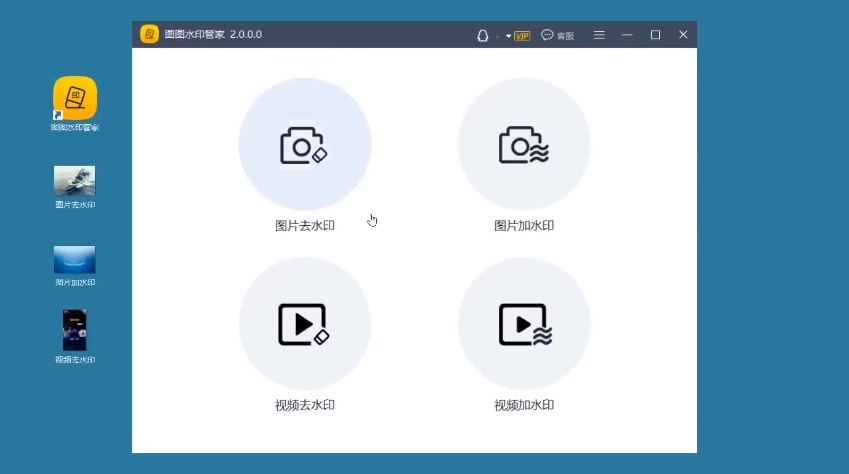 3、除此之外,圖圖水印管家還具備添加圖片水印、視頻去水印、視頻加水印的功能。