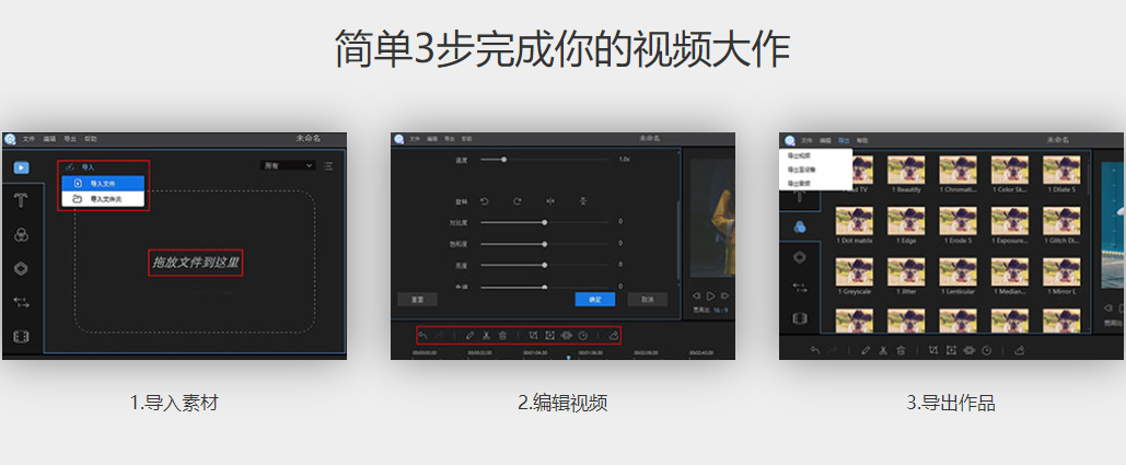 此視頻編輯工具可在日常使用,如:教學(xué)內(nèi)容、軟件介紹、培訓(xùn)資料、電影剪輯、營銷視頻制作等。豐富的特效,讓您暢享影音樂趣。