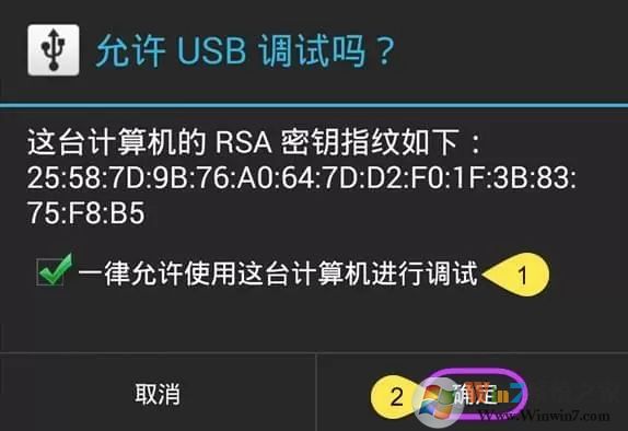 2、使用USB數(shù)據(jù)線連接安卓手機與電腦,如遇詢問允許調(diào)試模式窗口,選擇“一律允許使用這臺計算機進行調(diào)試”后,點擊“確定”。靜待幾秒,APP就安裝成功了。