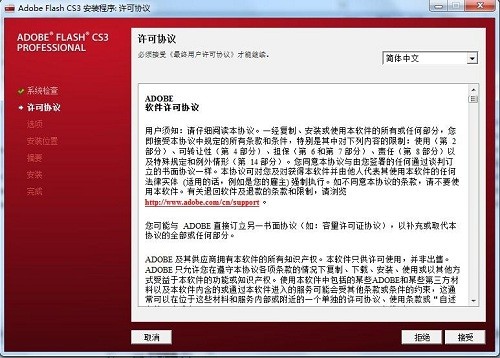 2、在安裝前需要關(guān)閉相關(guān)的軟件,例如photoshop、firefox等,這時會出現(xiàn)安裝畫面,點擊“接受”按鈕3、接下來再點擊下一步按鈕,在選擇需要安裝的路徑,一般選擇數(shù)據(jù)盤
