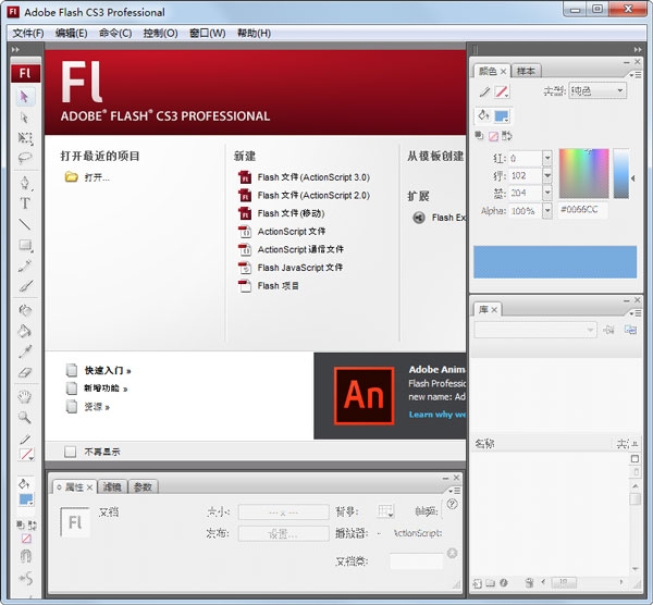 1. 啟動Flash CS3并創(chuàng)建一個新的文檔。