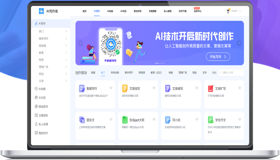 小漁AI的AI寫作功能可以根據(jù)用戶提供的關(guān)鍵詞,自動(dòng)生成與之相關(guān)的文章,不僅可以幫助用戶快速完成寫作任務(wù),還能避免因?yàn)閮?nèi)容重復(fù)而導(dǎo)致的侵權(quán)問題。小魚AI的AI續(xù)寫功能則可以讓用戶在已有的文章基礎(chǔ)上,繼續(xù)創(chuàng)作出更加完整的作品。無論是長(zhǎng)篇大論還是短小精悍,小魚AI都能為用戶提供全方位的寫作支持。